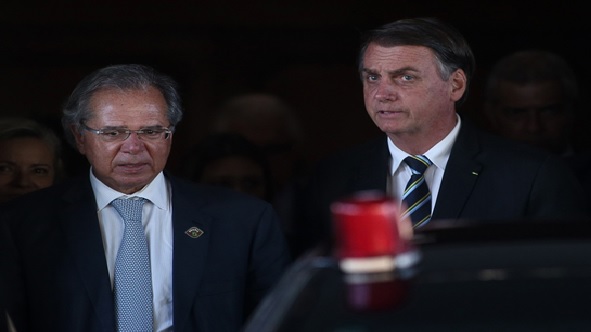 O presidente Jair Bolsonaro e o ministro da Economia, Paulo Guedes, após reunião na sede do ministério, em Brasília.