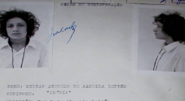 Ficha policial de Miriam Leitão, jornalista da Rede Globo que foi vítima de torturas durante o regime militar