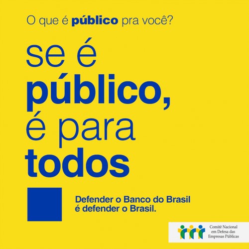 “Os bancos públicos são essenciais para o desenvolvimento do Brasil. São instituições que administram dezenas de programas em setores como educação, saúde, moradia… Elas têm como meta um papel social, e não apenas o lucro, e precisam continuar assim. Defender o BB e demais bancos públicos é também defender o Brasil e seu povo”, aponta a coordenadora do Comitê Nacional em Defesa das Empresas Públicas, Rita Serrano.