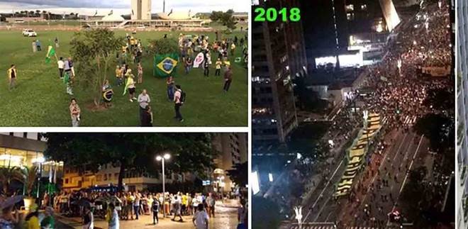 Com o golpe desmoralizado, assim como os movimentos que vinham convocando mobilizações, as manifestações desta terça-feira, 3, para pressionar o Supremo Tribunal Federal a negar o habeas corpus do ex-presidente Lula tiveram baixa adesão pelo país; em Brasília, o ato em frente ao Congresso Nacional foi um fiasco, reunindo poucas pessoas; no Rio, o grupo Vem Pra Rua não conseguiu juntar mais que algumas centenas de manifestantes em frente ao hotel Rio Othon Palace; na Avenida Paulista, manifestantes se reuniram perto do Masp para pedir a prisão do ex-presidente, bem diferente a favor do golpe que chegaram a lotar a avenida; nem com anúncios pagos em jornais aliados, manifestação anti-Lula se livrou do fracasso