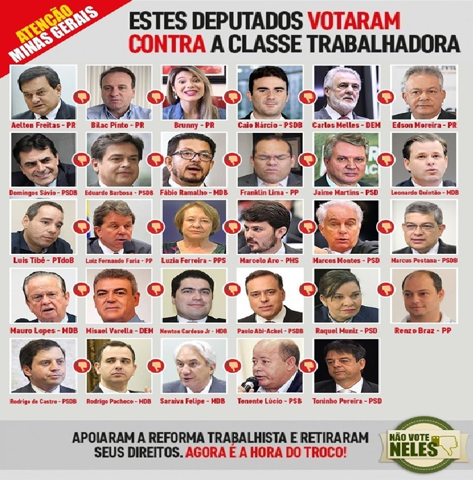 Apenas para lembrar, observe o cartaz abaixo dos deputados mineiros INIMIGOS dos trabalhadores.