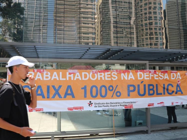 Bancários deflagraram ato nacional em defesa das empresas públicas e pela soberania nacional nesta sexta-feira 4. Em São Paulo, as atividades se concentraram na região da avenida paulista, um dos principais centros financeiros do país.