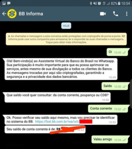 Banco do Brasil testa informar saldo e extrato da sua conta via WhatsApp