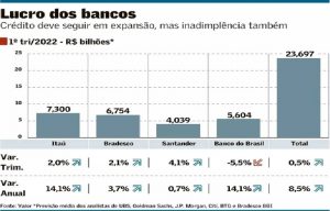 As projeções de seis casas colhidas pelo Valor apontam que Itaú Unibanco, Bradesco, Santander e Banco do Brasil devem ter lucro combinado de R$ 23,697 bilhões no primeiro trimestre, com leve alta de 0,5% em relação ao quarto trimestre – que foi recorde – e avanço de 8,5% na comparação com o mesmo período de 2021. O desempenho anual deve ser o mais fraco desde o quarto trimestre de 2020, quando os números ainda estavam em queda em função da pandemia. A temporada de balanços terá início na próxima terça-feira, com o Santander.