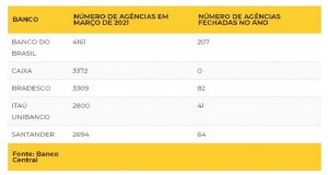 Quem mais reduziu sua estrutura entre janeiro e março foi o Banco do Brasil, que entrou na mira do presidente Jair Bolsonaro exatamente após anúncio de um plano de demissões e fechamento de agências. Em março, o presidente-executivo do BB, André Brandão, renunciou ao cargo após pressões do governo para sua saída.