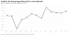 No entanto, no acumulado de 12 meses (de agosto de 2020 a agosto deste ano), o saldo do setor bancário é negativo, com a extinção de 9.200 empregos.