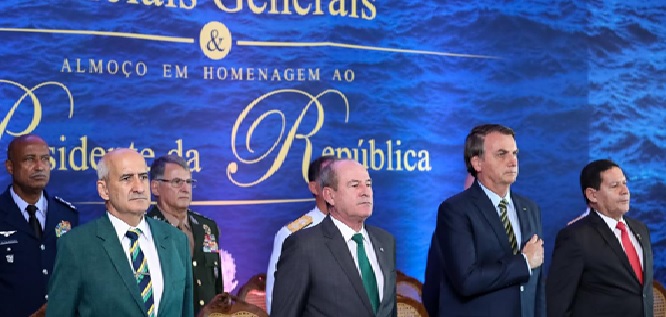 “Que amanhã, se Deus assim permitir, os senhores estarão aqui na frente, muito bem representando o nosso Brasil. Novos desafios, com Deus no norte”, discursou Jair Bolsonaro durante almoço comemorativo da promoção de novos oficiais. Bolsonaro lembrou feitos de generais que presidiram o Brasil durante a ditadura militar e disse que as Forças Armadas são a âncora de seu governo