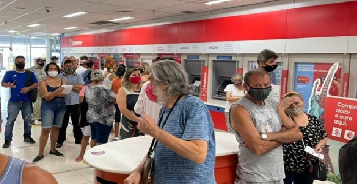 Resultado das inúmeras demissões e fechamento de agências em todo o país, o atendimento no Bradesco está cada vez mais difícil. Mesmo com o cenário de pandemia, que pede distanciamento social, as cenas vistas são de intensas aglomerações, dentro e fora das agências, além da sobrecarga de trabalho, já que os empregados têm de gerir a demanda grande a ainda vender produtos.