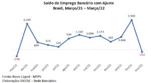 Após 11 meses de resultados positivos, o setor bancário apresentou, no mês de março, queda no emprego formal de 212 postos de trabalho (2.892 admissões e 3.103 desligamentos). Nos últimos 12 meses, o saldo ainda é positivo, em 11,7 mil postos, impactado pela contratação de profissionais de tecnologia da informação, vagas não ligadas diretamente a serviços bancários, e pela convocação, pela Caixa Econômica Federal, de aprovados no concurso de 2014, seguindo ordem judicial.