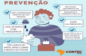 A Contec lembra que no dia 1°deste mês distribuiu a todas as entidades por e-mail e via redes sociais material preventivo sobre a infecção por Convid-19, o vírus do coronavírus.