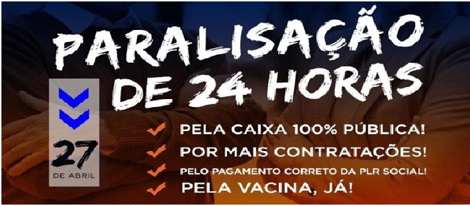 Em protesto aos ataques do governo Bolsonaro, os empregados da Caixa, em várias capitais do país, decidiram paralisar as atividades por 24h nesta terça-feira (27/04) e pelo estado de greve. A orientação é que quem tiver em trabalho presencial não compareça ao local e quem estiver em trabalho remoto não deve logar a máquina.