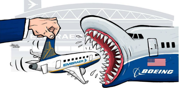 “O acordo da Boeing com a Embraer é estratégico para a empresa americana não só porque amplia sua presença no exterior como também porque permite à empresa entrar no mercado de aeronaves de médio e pequeno porte. Além disso, reforça sua posição para competir com a europeia Airbus, num momento em que o duopólio das duas gigantes da aviação mundial começa a sofrer concorrência de rivais de Rússia, Japão e China. Além disso, ao acrescentar os jatos da família E da Embraer ao seu portfólio, a Boeing aumenta o arsenal para sua mais recente batalha com a Airbus: o mercado de aeronaves de 100 lugares. “