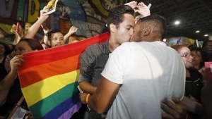 Homens se beijam em protesto contra o prefeito Marcelo Crivella