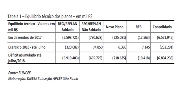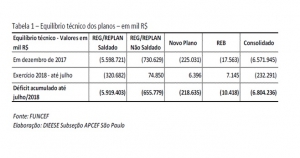Os resultados de julho mostram crescimento no deficit, que alcançou R$ 6,8 bilhões ante R$ 6,57 bilhões até dezembro de 2017. O REG/Replan Saldado é o único plano com resultado negativo em 2018, apresentando deficit de R$ 320 milhões até julho e R$ 5,9 bilhões no acumulado. Os demais planos apresentaram superavit consolidado de R$ 88 milhões no período, mas no acumulado estão com cerca de R$ 884 milhões de deficit.