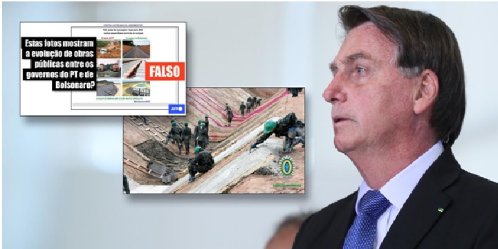 Uma das fotos mais disseminadas pela rede de fake news bolsonarista mostra soldados do Exército trabalhando em um dos trechos da transposição do rio São Francisco e afirma que seria um fato recente, durante o governo Bolsonaro (veja no alto desta reportagem). No entanto, uma checagem realizada pela agência AFP constatou que a foto é de 2012, quando a presidente era Dilma Roussef: “a foto em questão aparece na página do Exército brasileiro no Flickr com data de 12 de maio de 2014. À AFP, por sua vez, o 1º Grupamento de Engenharia do Exército informou que ela se refere a uma obra de 2012 de drenagem externa do Canal de Aproximação à Estação de Bombeamento 01 do Eixo Leste do Projeto de Integração do rio São Francisco”.