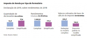 Na declaração referente ao ano de 2019, 17,4 milhões de pessoas optaram pelo formulário simplificado, enquanto 12,9 milhões usaram o modelo completo.