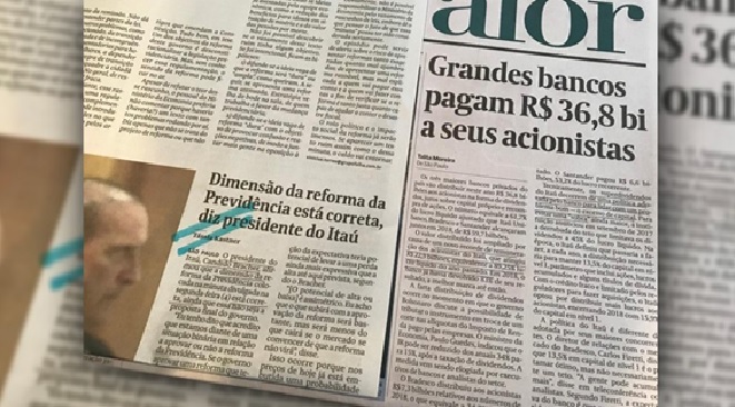 “Os 22,4 bilhões que o Itaú pagará aos acionistas representam custos para a economia, pois resultam dos juros extorsivos cobrados das famílias e das empresas, além dos juros sobre a dívida pública. Tudo isso sai do nosso bolso, dos 64 milhões de adultos negativados na economia, e vai essencialmente para um grupo restrito de grandes acionistas, que são isentos de impostos (desde 1995, isenção de impostos sobre lucros e dividendos distribuídos). Estamos no clube dos milionários, que enriquecem no sistema de agiotagem legalizado desde que acabaram com o artigo 192º da Constituição, que limitava os juros a 12% ao ano. Só lembrando: os juros para pessoa física na França, por exemplo, são de 3,5% ao ano. Ganhar dinheiro produzindo é útil, ganhar dinheiro com dinheiro, no cassino financeiro, apenas prejudica a economia”.