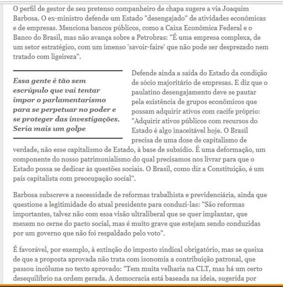 Observação: Os colegas do Banco do Brasil e da Caixa devem se atentar para as opiniões políticas e econômicas do agora candidato, Joaquim Barbosa sobre economia e privatizações.