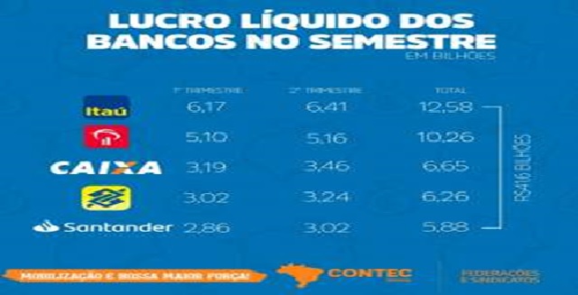 Com a divulgação do lucro líquido da Caixa Econômica Federal no segundo trimestre de 2018, de R$ 3,46 bilhões, o ganho dos cinco maiores bancos do país, somados, saltou para R$ 41,6 bilhões nos primeiros seis meses do ano. A cifra já é mais da metade do lucro total do setor em 2017 (R$ 77,4 bilhões), o que reforça as chances de um novo lucro anual astronômico.