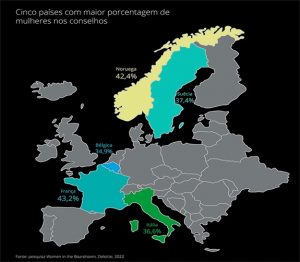 Outro ponto importante é a velocidade das mudanças. Uma média global de apenas 19,7% dos assentos no conselho é ocupada por mulheres, um aumento de 2,8 pontos porcentuais desde 2018. Se essa taxa de crescimento continuar, um cenário próximo à paridade ocorrerá somente por volta de 2045.