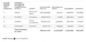 Os quatro fundos de pensão de estatais estão entre os maiores do país.”