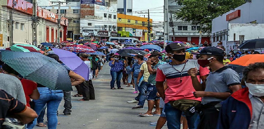 Fila para receber auxílio emergencial em Caruaru (PE): senadores preveem que aumento do desemprego vai exigir pagamentos de benefícios sociais Divulgação Prefeitura de Caruaru (Por Bárbara Gonçalves) –