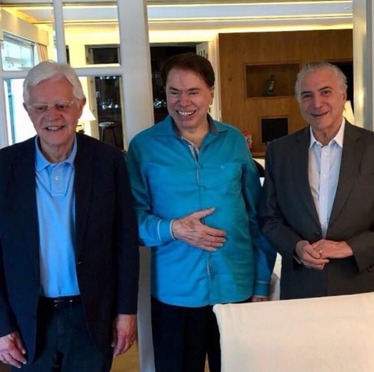 Temer vai gravar entrevistas para as duas atrações do SBT no dia 18. Anfitrião do encontro, Silvio Santos convidou a família para almoçar com Temer, que foi acompanhado do ministro Moreira Franco. O deputado Fábio Faria (PSD-RN), genro do apresentador, também participou.