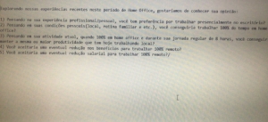 Não bastassem as demissões e o aumento constante de cobranças por cumprimento de metas – inclusive com ameaças aos bancários – o Santander resolveu, agora, questionar se trabalhadores aceitariam se “voluntariar” a abrir mão de parte de salários e benefícios para trabalhar em home office. Funcionários da TI que atuam no prédio Geração Digital foram convocados a responder uma pesquisa para saber quais deles aceitariam perdas de direitos.
