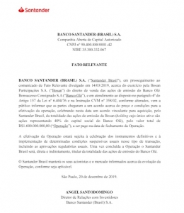 Com a efetivação da compra, o Santander passou a ser, direta e indiretamente, titular da totalidade das ações de emissão do Banco Olé.