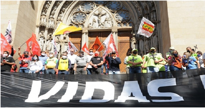 Sindicalistas voltaram a cobrar impeachment de Bolsonaro. “Momento de oração e indignação”, disse o padre Júlio Lancelotti