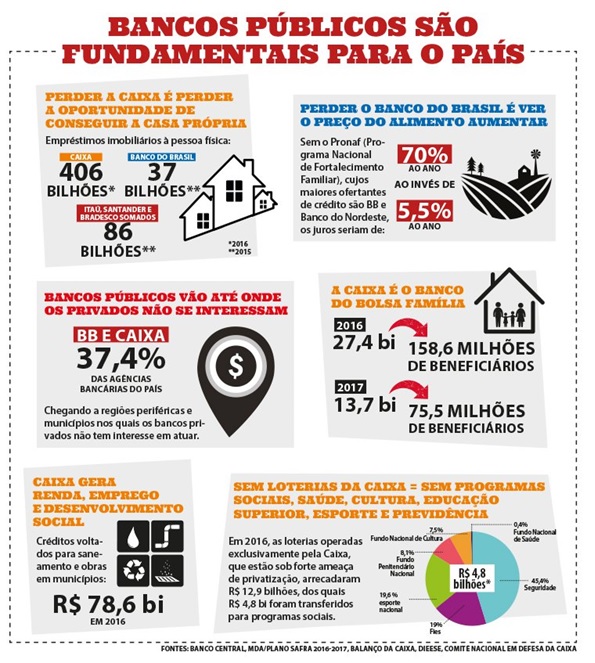 Os que defendem as privatizações argumentam que as empresas estatais são focos de ineficiência e corrupção, e que sua venda resolverá o problema do déficit nas contas públicas. Mas a realidade é que as estatais, quando bem administradas, desempenham função essencial no desenvolvimento social e na soberania nacional.