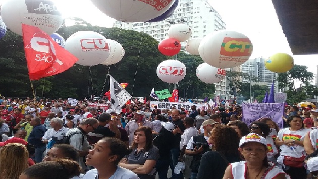 Em Porto Alegre, integrantes das centrais e movimentos sociais fizeram caminhada até o Aeroporto Salgado Filho, e realizam panfletagem no saguão do terminal para alertar a população sobre os impactos da reforma.