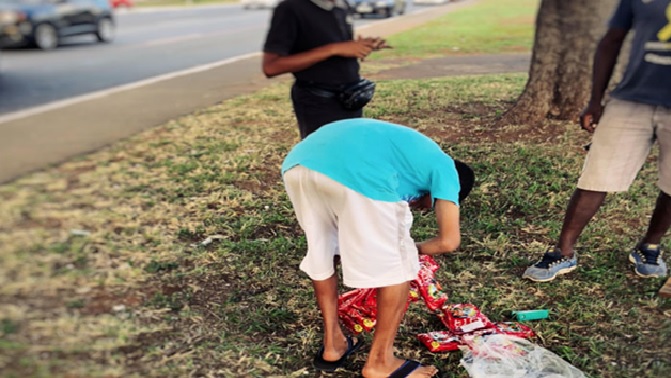 “A gente precisa levar dinheiro pra casa”, diz o mais velho. São 16h. Já se foram três horas de trabalho e faltam mais duas. Os irmãos estão acompanhados do pai, Leandro *, que usa uma blusa que pede a paz no trânsito. Para a família, a indiferença da maioria das pessoas que passam por ali é mais do que notada. A correria é por um corredor de retrovisores cercado de barulhos de motores. O dia é assim. Deixam as pipocas sabendo que na grande maioria das vezes vão ter que buscá-las sem nenhum retorno, nem de moeda nem de olhares.