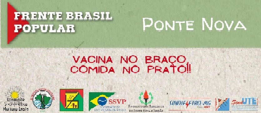 A pandemia de coronavírus tornou ainda mais necessária e urgente a mobilização de toda a sociedade no enfrentamento da fome e da miséria que massacram grande parte da população brasileira. Observa-se que vem aumentando a população de rua em todo País, com famílias inteiras acampadas nas calçadas, além do avanço da miséria nas comunidades periféricas dos municípios da região metropolitana, o que se intensificou com a pandemia e com a omissão do poder público. Diante disso, o Sindicato dos Bancários de Ponte Nova e Região, solidariza com a Campanha Frente Brasil Popular, em Ponte Nova, que também, recebe apoio da Dimensão Sociopolítica Mariana Leste, SindUte, Sindieletro MG, SSVP- Sociedade de São Vicente de Paulo, Movimento dos Atingidos por Barragens e Ganga Zumba.